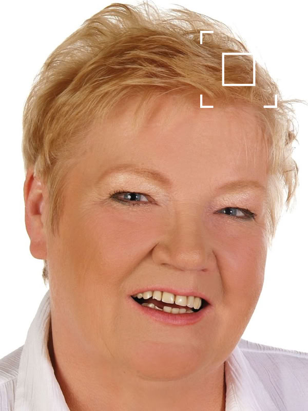 Kein typisches „Prothesengesicht“ mehr, denn die Zähne fügen sich nun harmonisch in Ihr Gesicht ein.