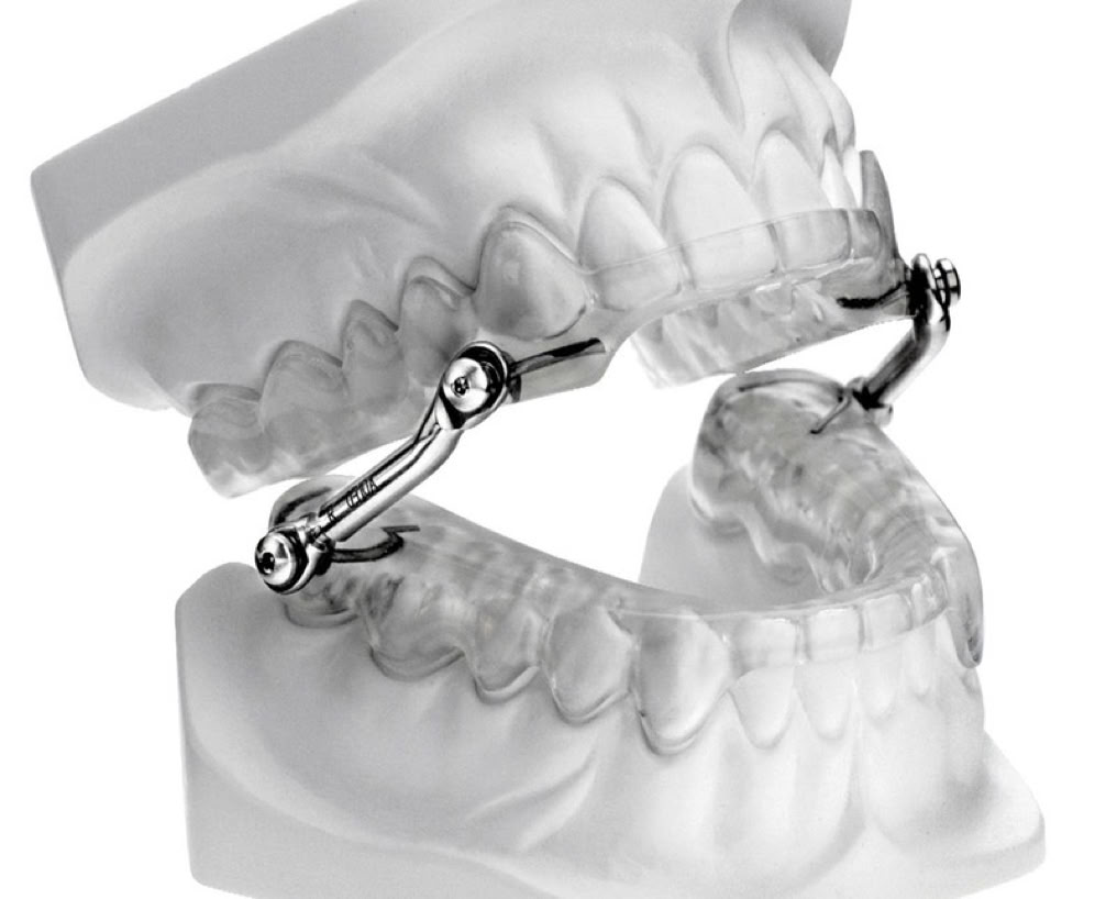 Das Schnarchgerät verhindert, dass der Unterkiefer im Schlaf, wenn sich die Muskeln entspannen, nach hinten bzw. unten fällt und so die Atemwege verengt. Durch Schienen in Ober- und Unterkiefer, die durch Teleskopstangen verbunden sind, wird diesverhindern Alle anderen Bewegungen wie Öffnen, Seit- und Vorwärtsbewegung bleiben weiterhin möglich.