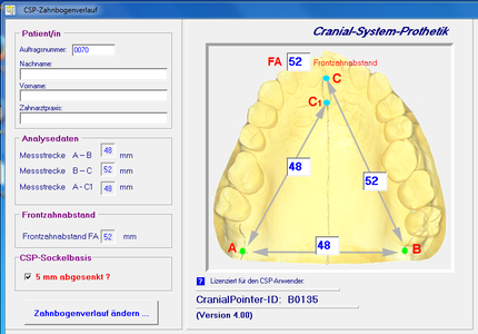 Mit dem CSP (Cranial-System-Prothetik von Helmut Storck) können wir nach einer anatomischen Vermessung mit Hilfe einer Computersoftware die statisch und funktionell korrekte Position der Zähne berechnen.